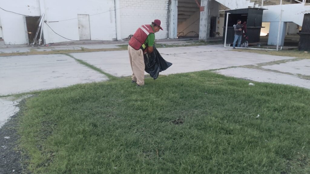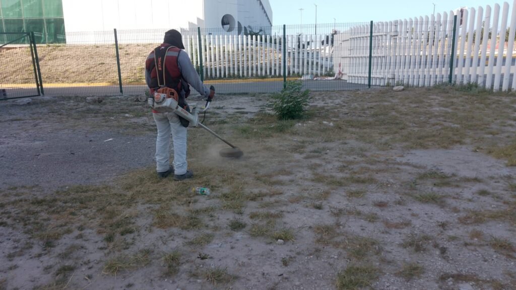 Se procedió a hacer limpieza general, recorte de pasto y de maleza en el Polideportivo Reynosa.