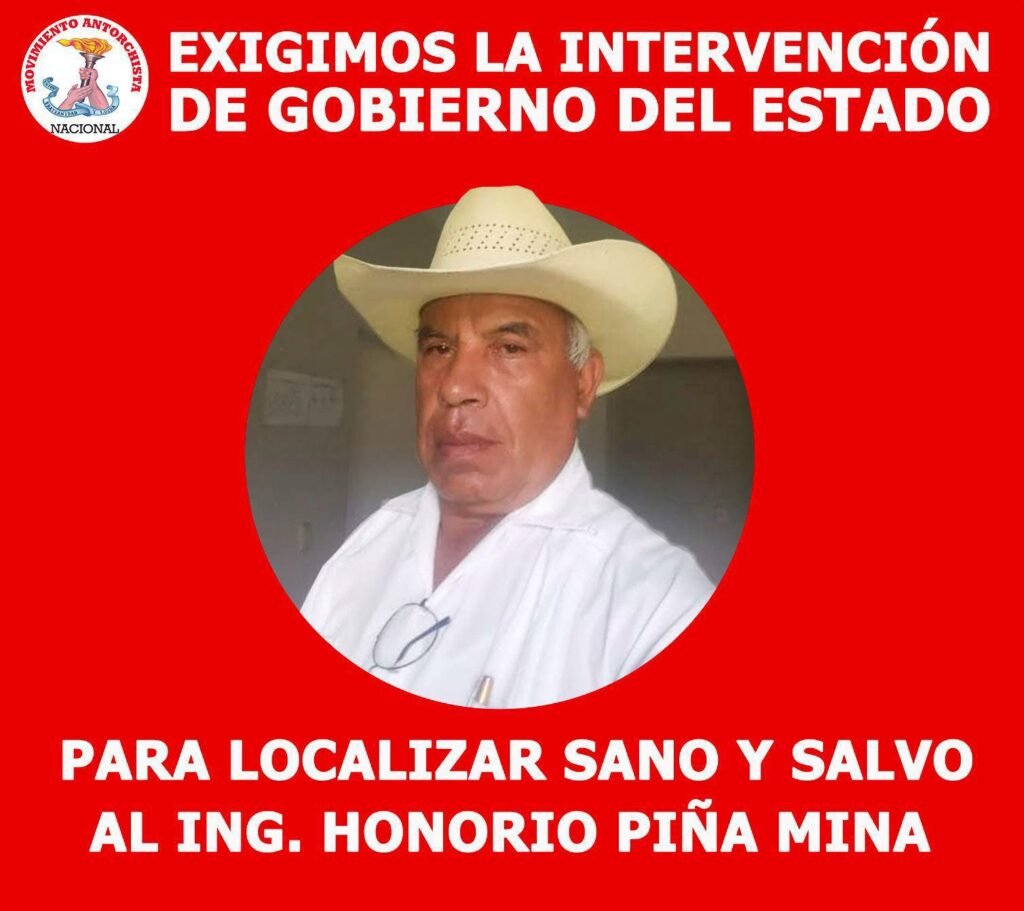 -El Movimiento Antorchista denuncia la desaparición de Honorio Piña Mina, integrante de su Comité Estatal, y advierte posibles móviles políticos detrás del secuestro.