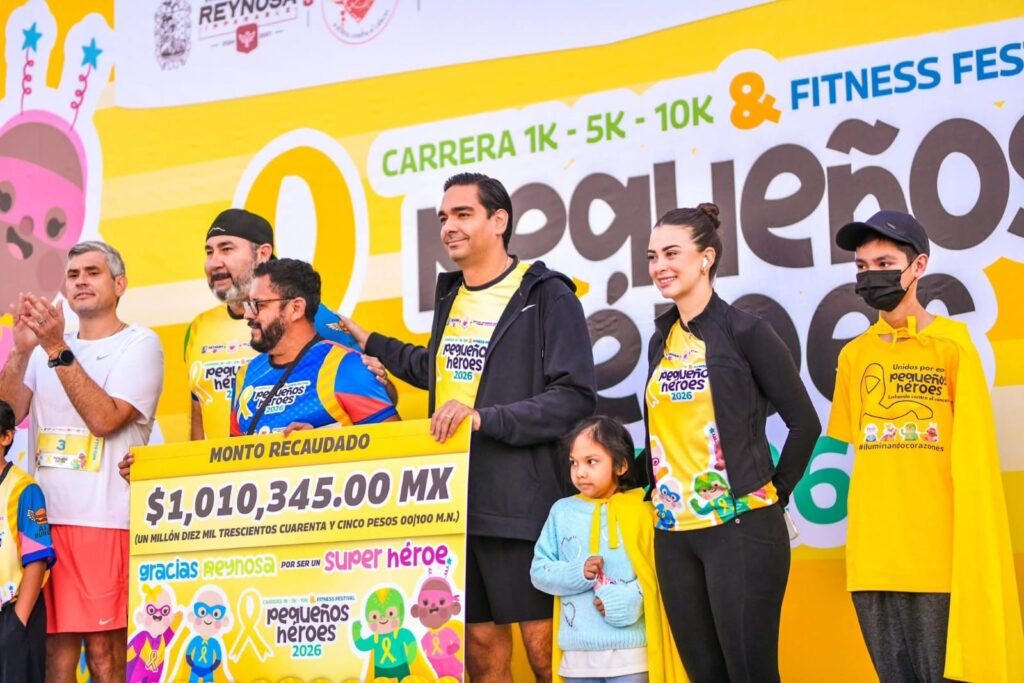 Reynosa, Tamaulipas. La Carrera 1K, 5K, 10K, Fitness Festival Pequeños Héroes 2026 fue inaugurada por el Alcalde Carlos Peña Ortiz y su esposa Alejandra Yelitza Garza, la mañana de acompañados por el Diputado Local Juan Carlos Zertuche Romero y por el Presidente de la Fundación Iluminando Corazones a Niños con Cáncer, una competencia hecha con solidaridad y amor que fortalece el tejido social de nuestra comunidad.