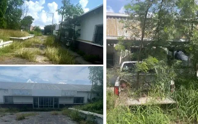 Ubicado a un lado de la Brecha 109, el complejo de edificios ha sido invadido por la maleza y el abandono.