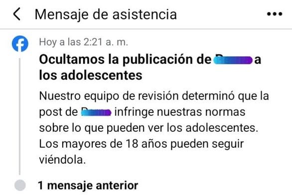 Pero lo verdaderamente alarmante llegó con la respuesta de la propia plataforma: “Tras revisar la denuncia, Facebook determinó que el contenido sí infringe sus normas, pero únicamente para adolescentes. La solución fue “ocultarlo” a menores de edad, permitiendo que los mayores de 18 años sigan viéndolo. Caso cerrado.