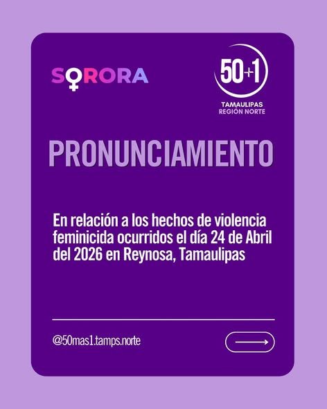 Por Jesús Rivera Reynosa, Tamaulipas. La colectiva "50 + 1" condenó enérgicamente el cruel feminicidio que ocurrió ayer en esta fronteriza ciudad de Reynosa.Mediante un comunicado, establecieron su postura en…