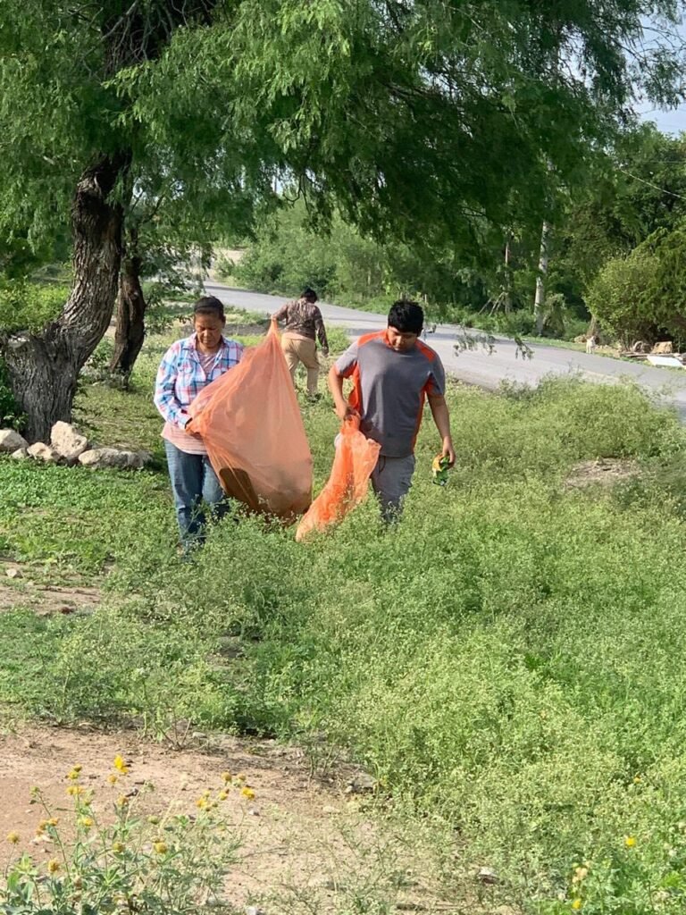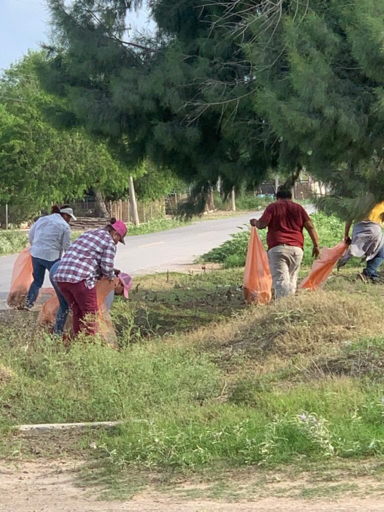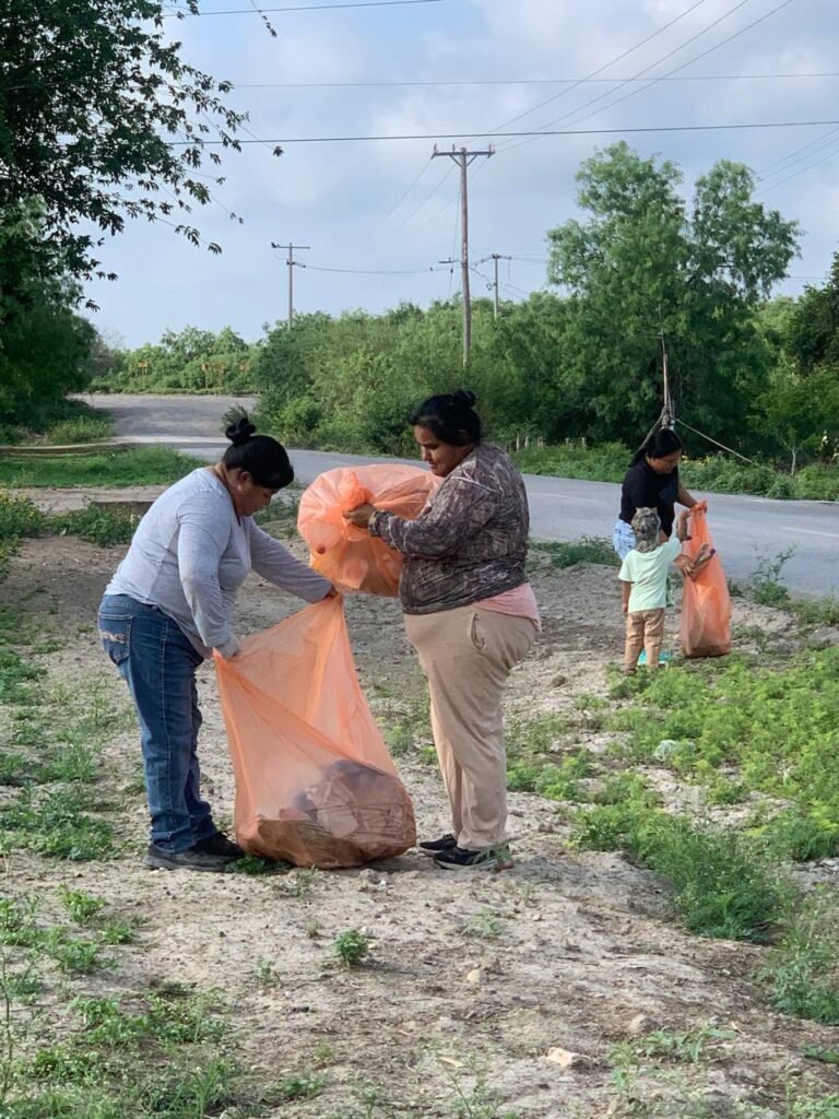 Reynosa, Tamaulipas. Familias del ejido Santo Niño, ubicado hacia el poniente de la ciudad, participaron en una ardua jornada de limpieza, coordinados por la Dirección de Desarrollo Rural del Municipio.