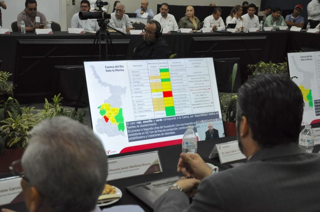 Tampico, Tamaulipas. El secretario de Recursos Hidráulicos para el Desarrollo Social, Raúl Quiroga Álvarez, presentó la actualización del Semáforo del Cuidado del Agua en el estado, con base en el balance hídrico de las principales cuencas.