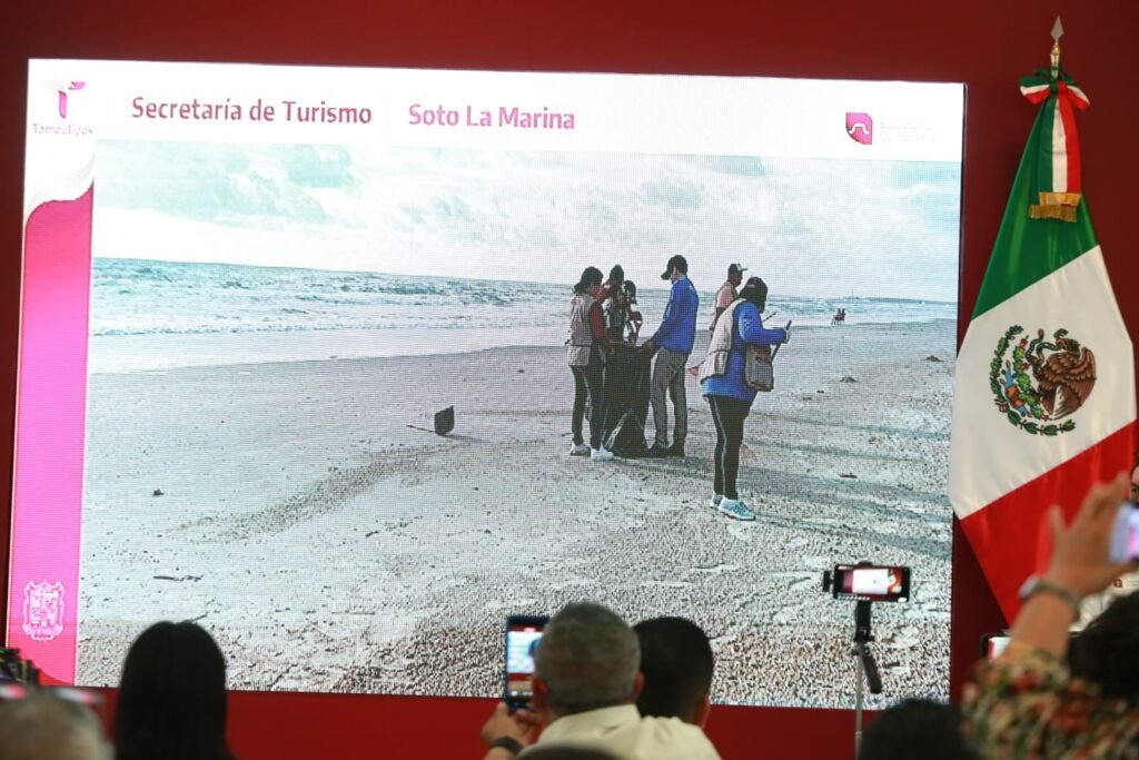Villarreal Anaya presentó imágenes de esta mañana que muestran las condiciones en que se encuentran las playas del estado y aseguró que se mantiene estrecha vigilancia sobre la probable presencia de manchas de hidrocarburo, sin que existan altas concentraciones de estos residuos.