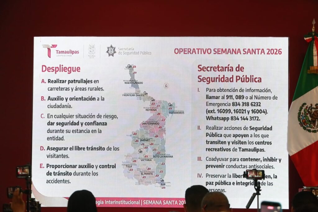 Durante la presentación de la Estrategia Interinstitucional de Seguridad y Asistencia Turística, Semana Santa 2026, que estará en operación hasta el próximo 18 de abril, y acompañado por los secretarios de Seguridad Pública, Turismo, el coordinador estatal de Protección Civil y el titular del Centro de Regulación de Urgencias Médicas, el gobernador indicó que se trata de un amplio despliegue que contempla la movilización de elementos, recursos institucionales y distintos equipos para brindar la mejor atención a nuestros visitantes.