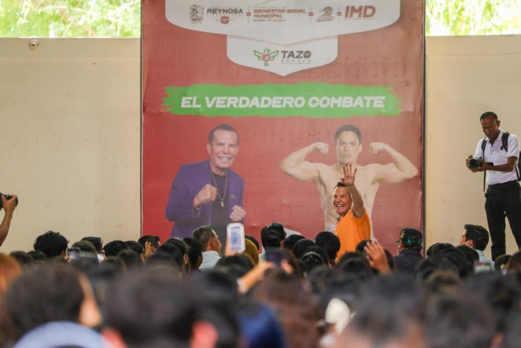 Reynosa, Tamaulipas. “La pelea más grande, más dura; fue abajo del ring, y la he librado”, dijo el Campeón Mundial Julio César Chávez, en su conferencia motivacional El Verdadero Combate, en la que estuvo acompañado por el Presidente Municipal Carlos Peña Ortiz, frente a los alumnos del CETIS 131, que dirige el Dr. Enrique Cuevas Nolasco.