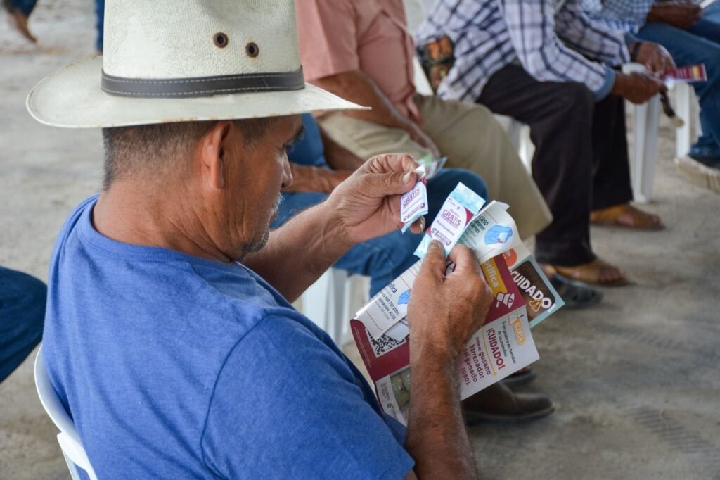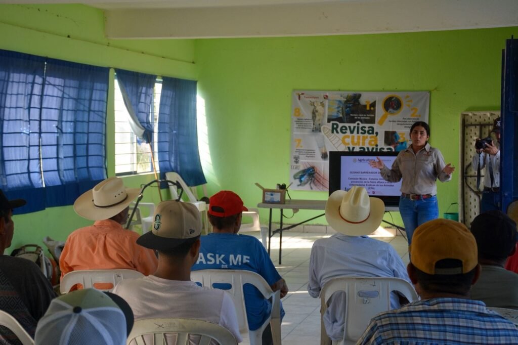 El titular de la Secretaría de Desarrollo Rural, Antonio Varela Flores, informó que además de las jornadas de capacitación, se realiza la entrega de material informativo, kits para toma de muestras y cicatrizante gratuito, con el objetivo de que las y los productores cuenten con las herramientas necesarias para actuar de manera inmediata ante una posible presencia del gusano barrenador.