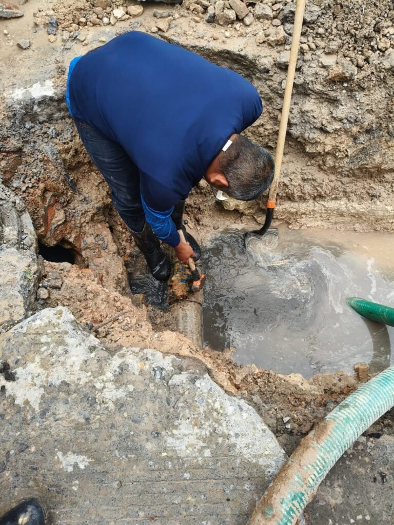 De manera complementaria, se atendió la reparación de una fuga de agua potable en tubería de 6 pulgadas de diámetro, localizada en calle 21 y Pedro Hugo González, acción que permitió evitar el desperdicio del vital líquido y mejorar la presión y distribución del servicio para los usuarios de la zona.