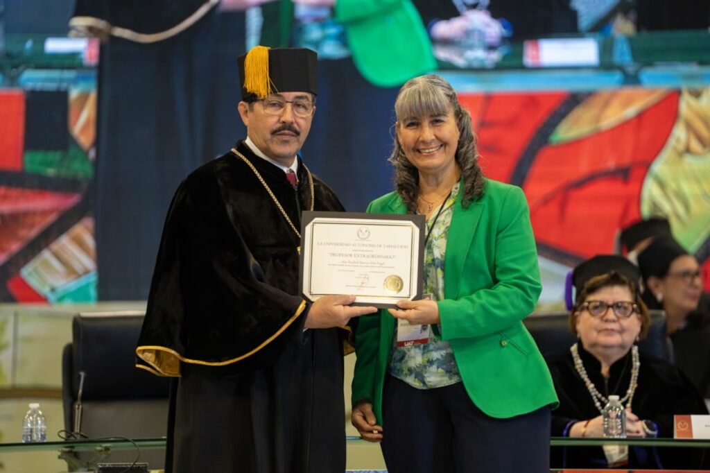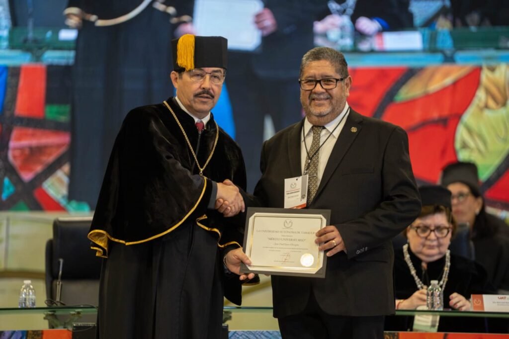 Ciudad Victoria, Tamaulipas. El rector de la Universidad Autónoma de Tamaulipas (UAT), Dámaso Anaya Alvarado, presidió la entrega de Reconocimientos al Mérito Universitario 2025, donde se distinguió a integrantes de la comunidad académica, estudiantil y administrativa por su trayectoria, desempeño y contribuciones al fortalecimiento institucional.