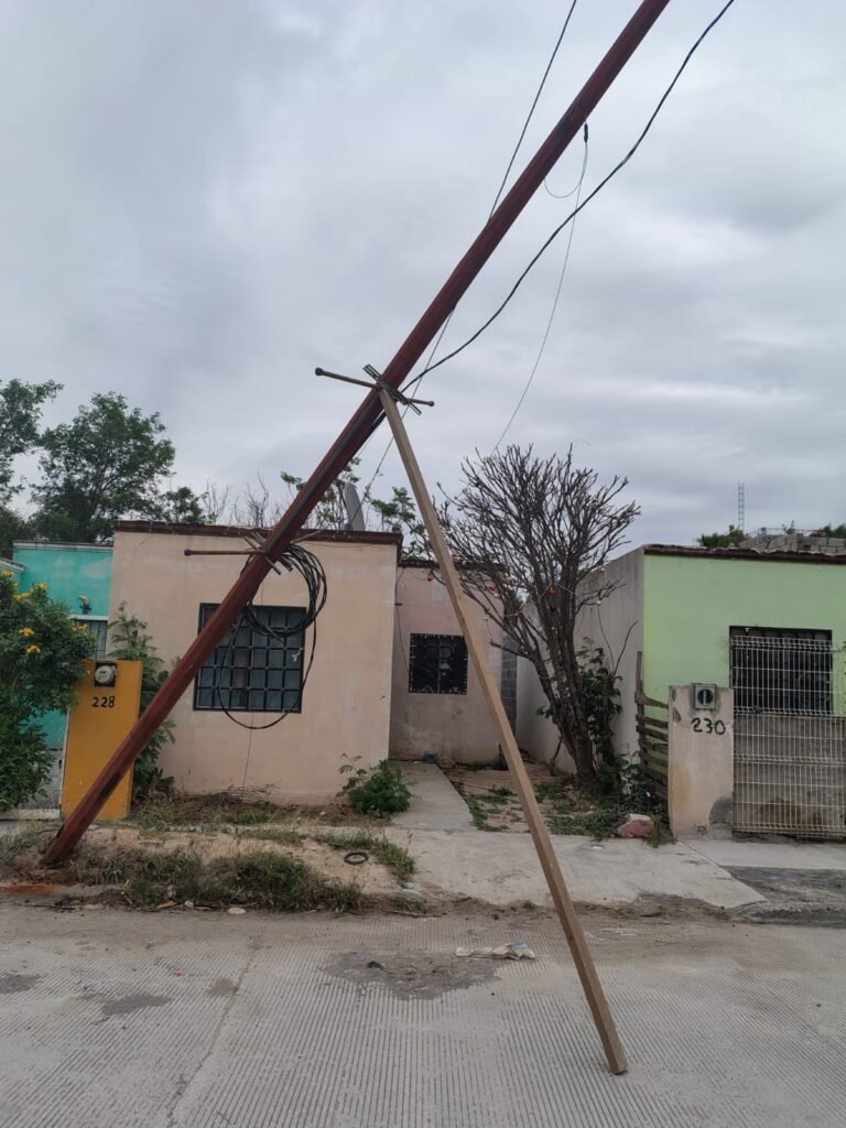 Recupera Gobierno de Reynosa postes del alumbrado público derribados por ventarrón