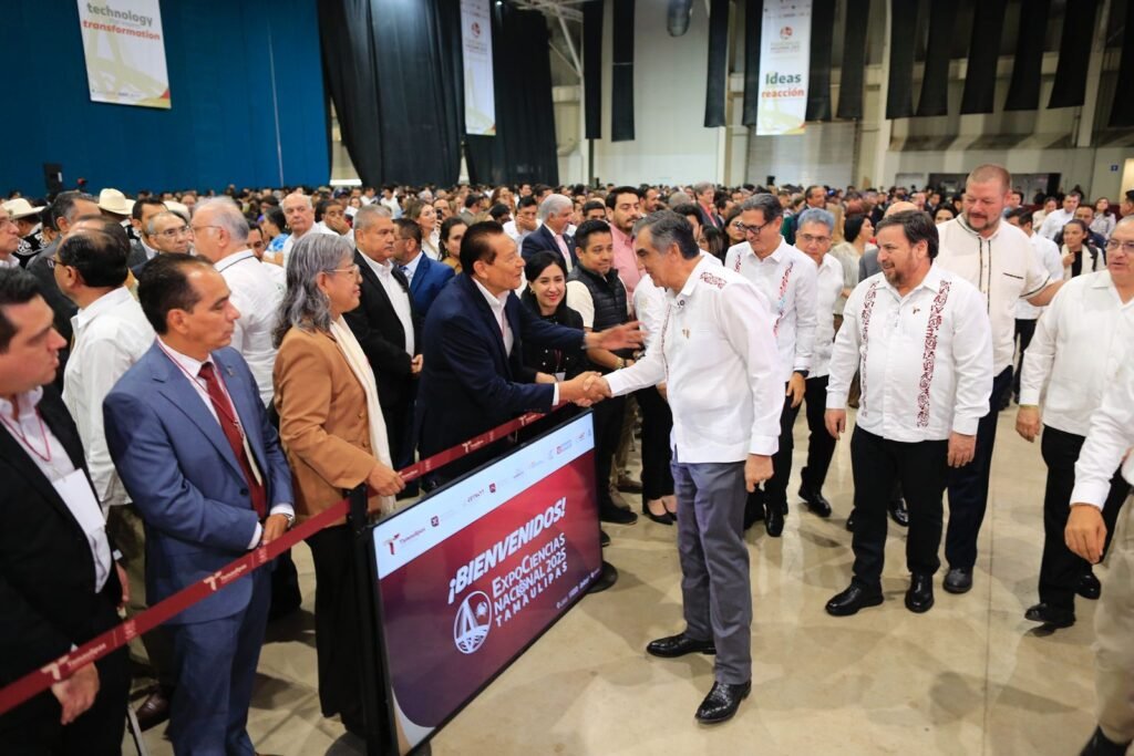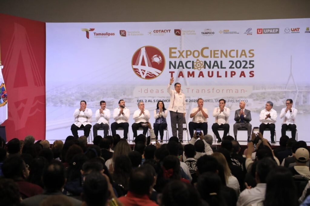 Tampico, Tamaulipas. Al inaugurar la ExpoCiencias Nacional Tamaulipas 2025, un encuentro que reúne a 1500 participantes con los 500 mejores proyectos de ciencia, innovación y tecnología, elaborados por niños, niñas y jóvenes, el gobernador Américo Villarreal Anaya refrendó todo su apoyo para seguir con la visión de la presidenta Claudia Sheinbaum y poner el conocimiento y el avance científico a favor del bienestar social.