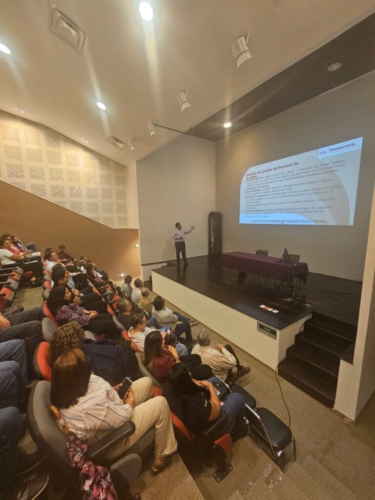 La primera capacitación, titulada “Nuevo Modelo de Transparencia”, se realizó de manera presencial en el Auditorio del Archivo General e Histórico del Estado de Tamaulipas. Estuvo dirigida a más de 40 personas servidoras públicas que forman parte de los Órganos Internos de Control y Comisarios, así como al personal operativo auxiliar adscrito a estas áreas.