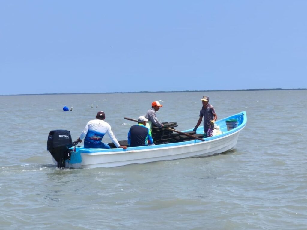 Estas actividades se realizan conforme al programa de trabajo del proyecto de granjas acuícolas que se desarrolla en la Laguna de San Andrés, con el objetivo de mejorar las condiciones de crecimiento y supervivencia del producto.
