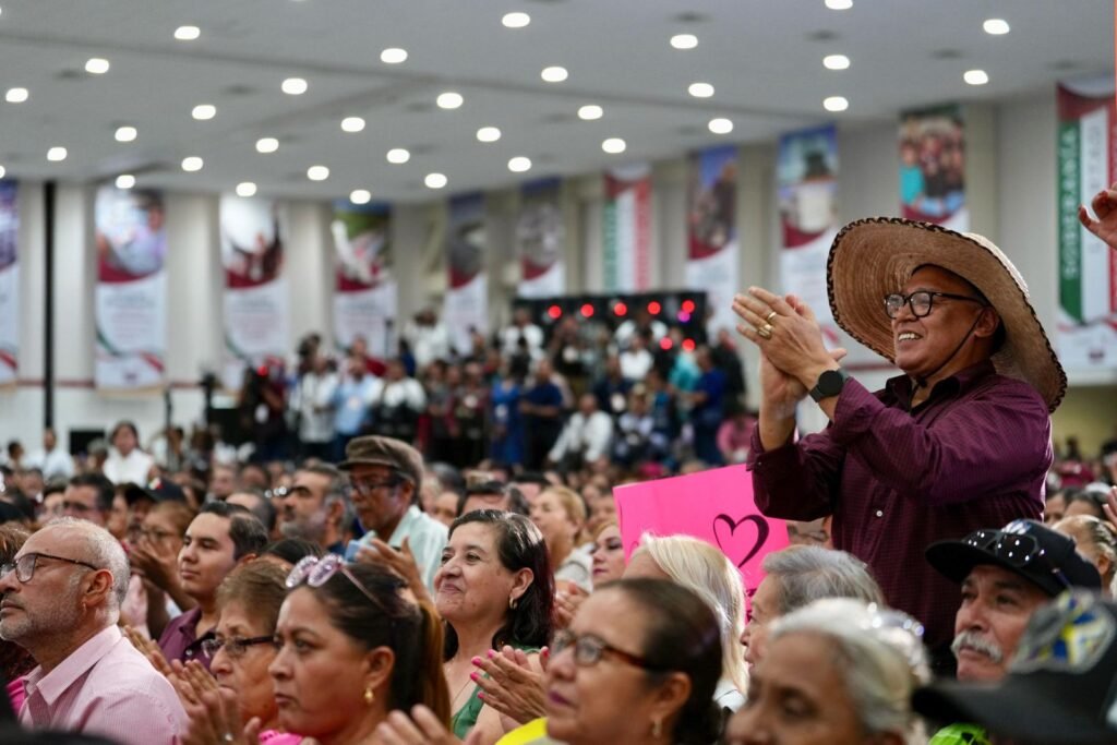 “Su presencia nos alegra y da esperanza en este momento inédito en que, por primera vez en la historia de México, una Presidenta rinde un informe y a su vez lo lleva a las 32 entidades de la República”, dijo.