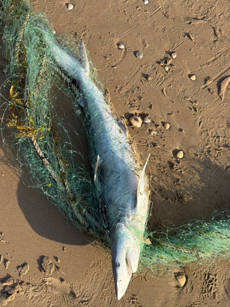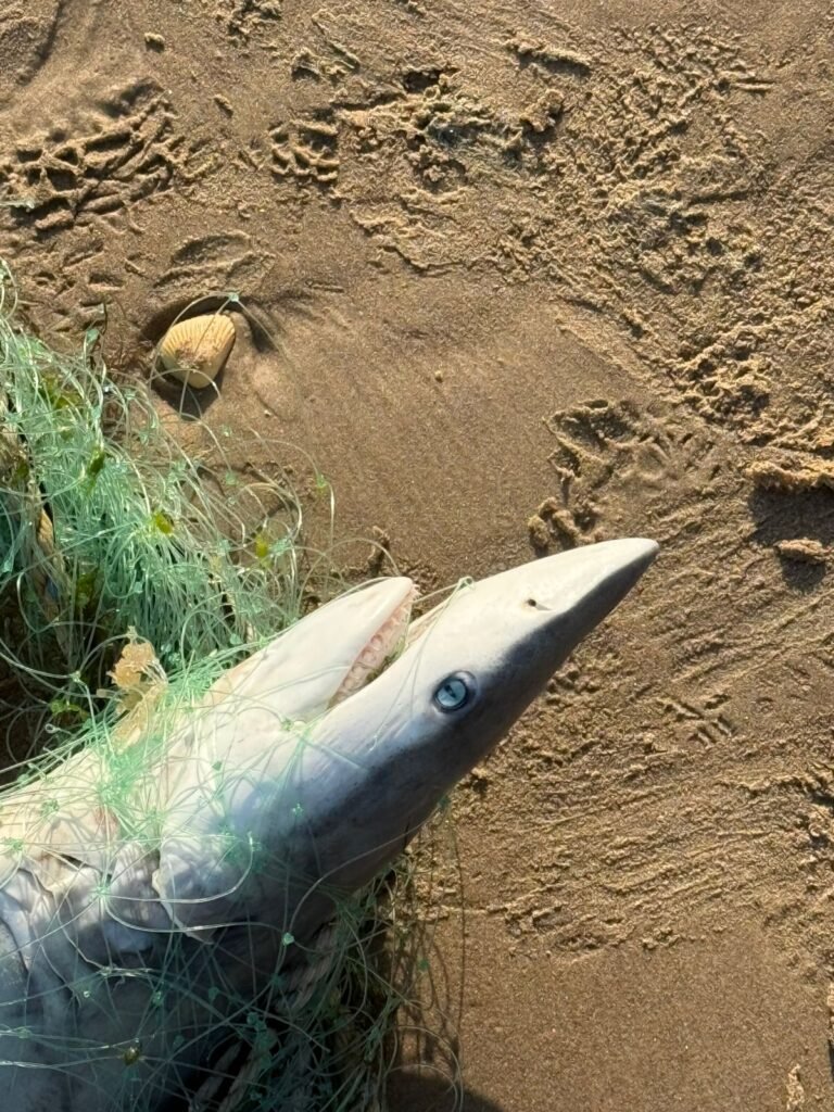 En la misma venían enredados varios peces y un tiburón pequeño, los cuales fallecieron al no poder respirar.