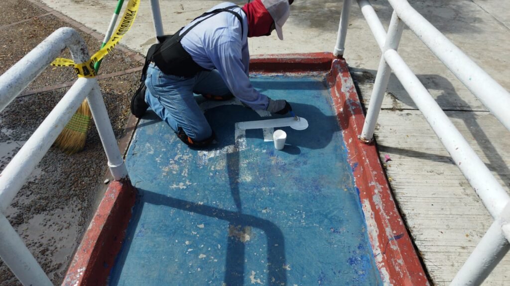 Cuadrillas de trabajadores rotularon en la escuela primaria Francisco Nicodemo de la colonia La Cañada, una rampa especial, así como las rampas en el puente de la entrada al fraccionamiento Villas de Imaq.