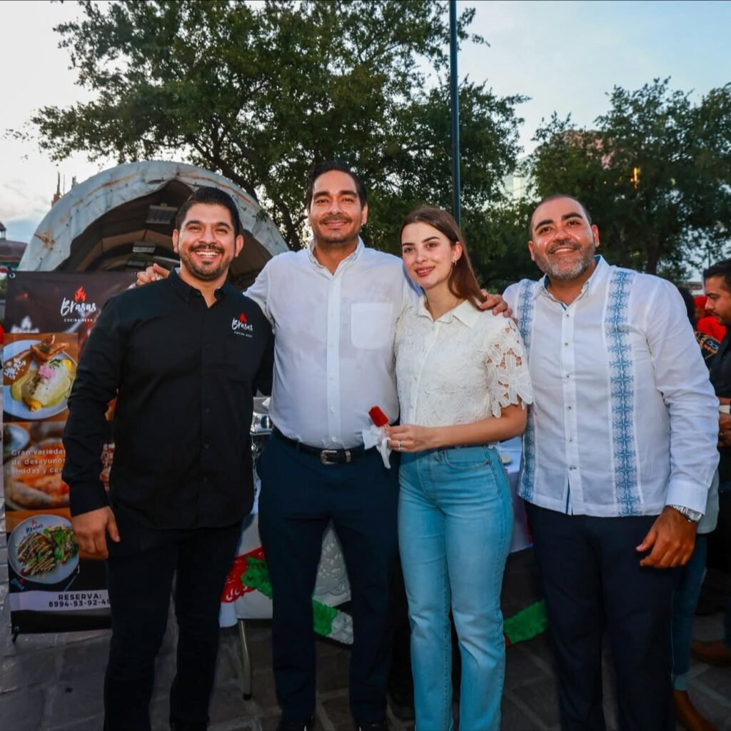 Entre la multitud, el Presidente Municipal y su esposa recorrieron los stands y felicitaron a Strike One con sus deliciosos elotes asados, Cheerschat, un sitio web que reúne a restaurantes locales; Tequila Don Ramón, franquicia Reynosa; Taquería Mares García, donde un taco al día es la llave de la alegría; El Che, con sus sabrosísimas empanadas argentinas en 14 sabores variados y entre otros La Troka Chancha.