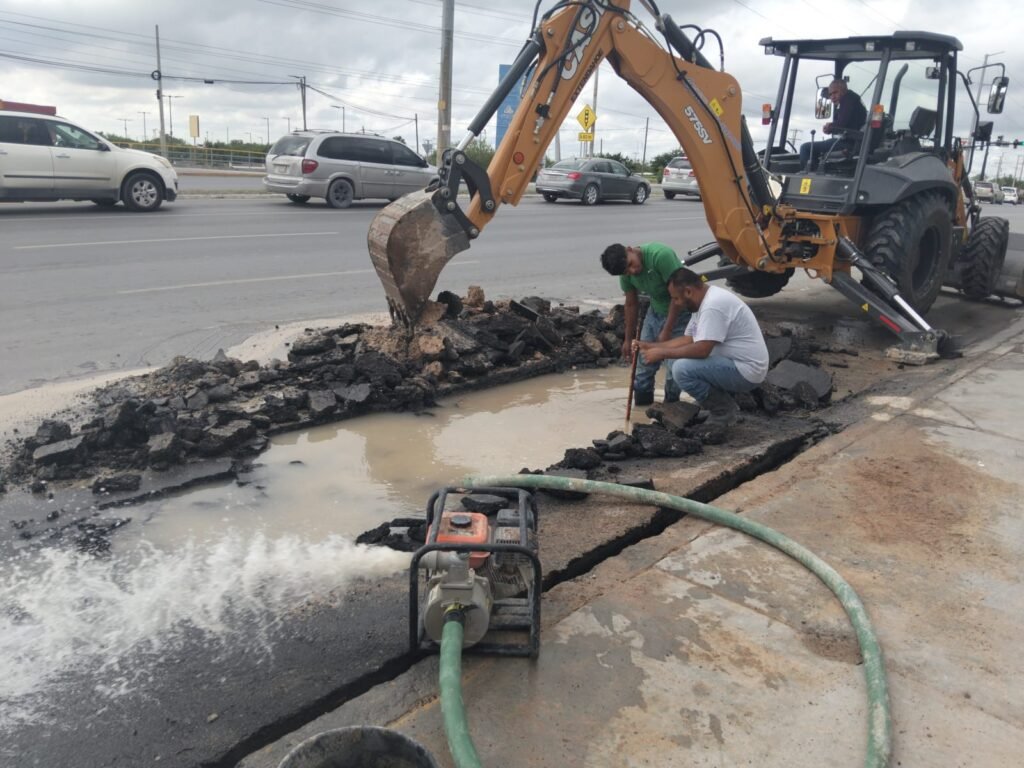 Reynosa, Tamaulipas. Por instrucciones del Alcalde, Carlos Peña Ortiz, la COMAPA Reynosa realiza trabajos para reparar fugas de agua potable en distintos puntos de la ciudad, con el objetivo de evitar el desperdicio del vital líquido y garantizar un servicio continuo y eficiente para todas las familias reynosenses.