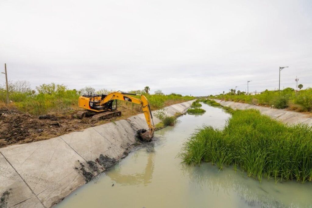 Reynosa, Tamaulipas. Dando impulso permanente al programa de mantenimiento de la infraestructura hidráulica, el Presidente Municipal Carlos Peña Ortiz supervisó el desazolve del Dren Reynosa, en el tramo de las colonias Miguel Hidalgo, Vicente Guerrero, Ribereña, y Del Valle.