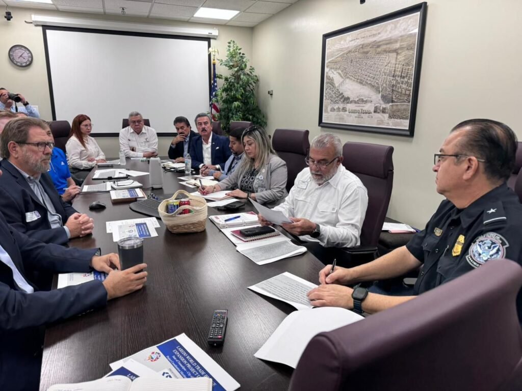 Nuevo Laredo, Tamaulipas. En seguimiento a las gestiones encabezadas por el gobernador Américo Villarreal Anaya, el secretario de Obras Públicas, Pedro Cepeda Anaya, sostuvo una reunión de trabajo en el Ayuntamiento de Laredo, Texas, para revisar los avances del proyecto de ampliación del Puente Internacional del Comercio Mundial – Nuevo Laredo III “World Trade Bridge”, una obra estratégica para fortalecer la capacidad logística entre México y Estados Unidos.