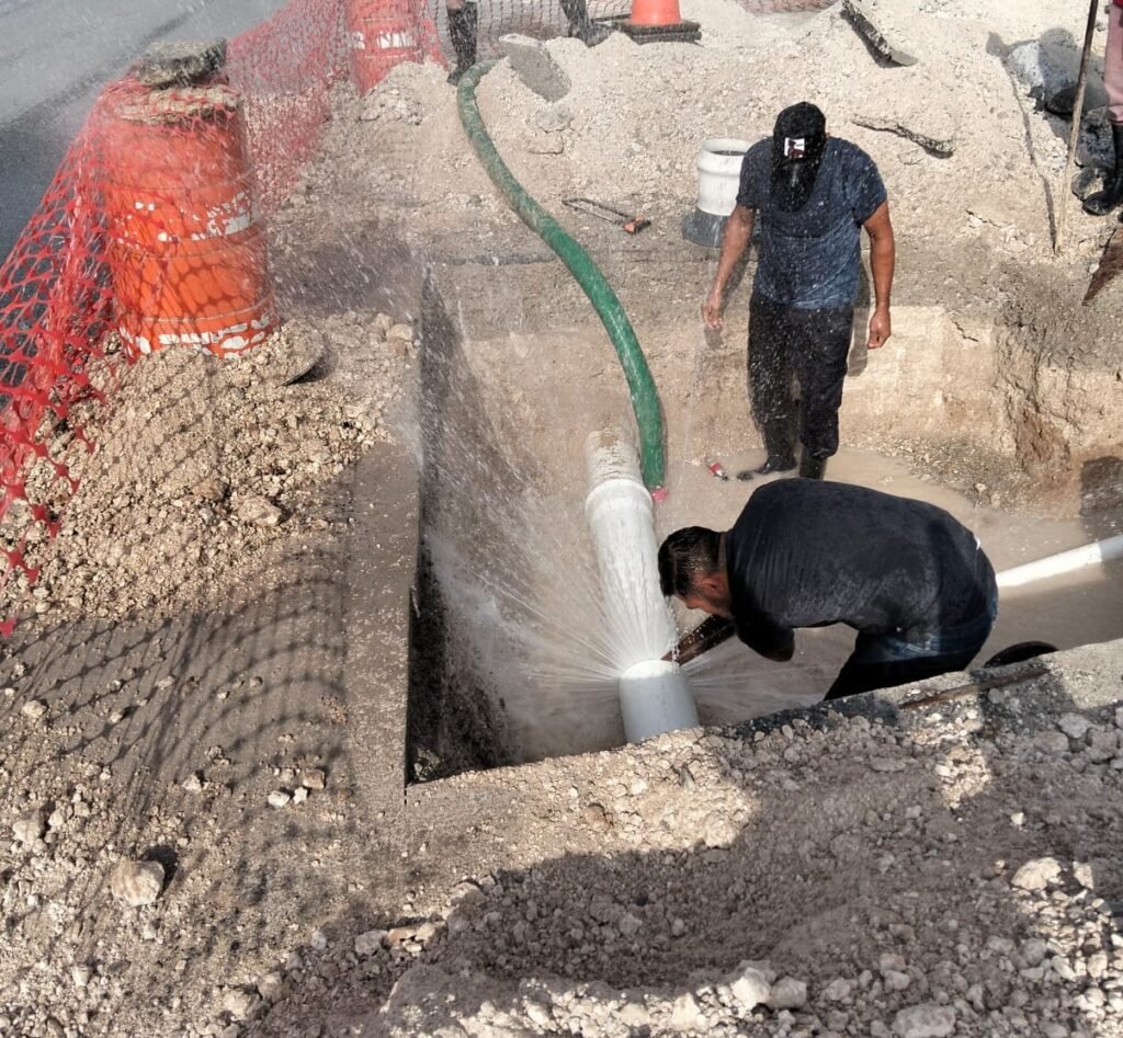 Cuadrillas del organismo llevaron a cabo la interconexión de tubería de 8 a 3 pulgadas en el fraccionamiento Punta Norte, con el objetivo de optimizar la distribución del agua potable y mejorar el suministro para las familias del sector.