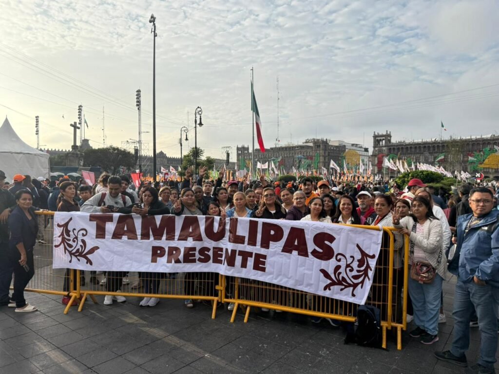 Ciudad de México. Con un mensaje de confianza en el rumbo del país y en las mejores oportunidades para el desarrollo de la entidad, el gobernador de Tamaulipas, Américo Villarreal Anaya, acompañado por la doctora María de Villarreal, presidenta del Sistema DIF Tamaulipas, atestiguó el mensaje de la presidenta Claudia Sheinbaum Pardo, con motivo de su primer año de gobierno pronunciado en el Zócalo capitalino.