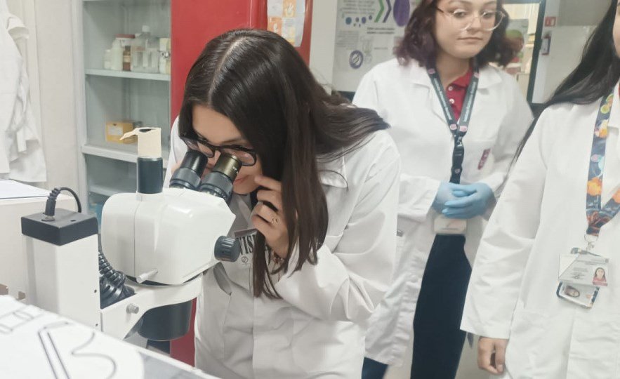 Compartió que las y los jóvenes tuvieron la oportunidad de ingresar a los laboratorios de química del CBG, donde participaron activamente en prácticas relacionadas con la seguridad e higiene en el laboratorio, la preparación de soluciones químicas, evaluaciones de pH y la observación de diversas muestras biológicas mediante microscopios de alta tecnología.