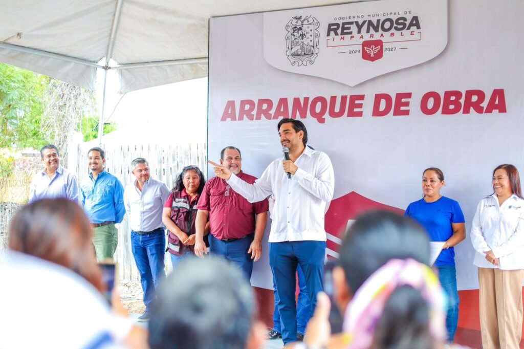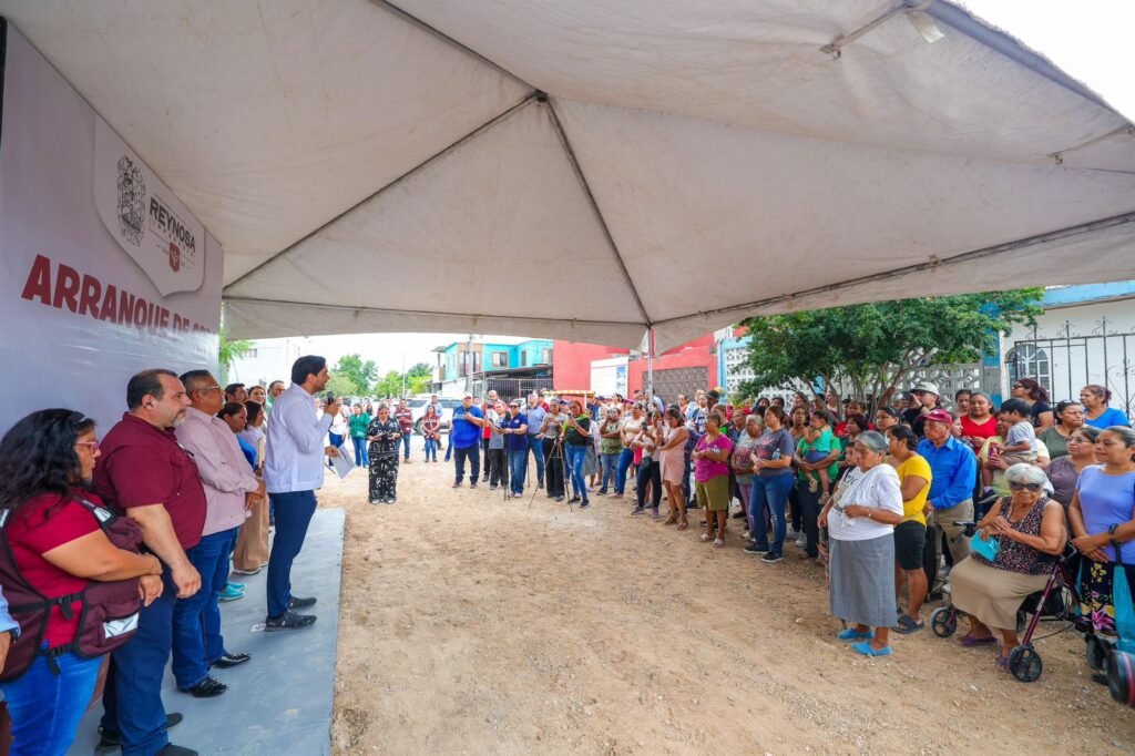 Reynosa, Tamaulipas. Hoy la calle Vega Domínguez, de la colonia Américo Villarreal Guerra, fue un gran escenario de mucha emoción y agradecimiento para los vecinos, este viernes 15 de agosto el Presidente Municipal Carlos Peña Ortiz dio el banderazo de inicio a la pavimentación, acompañado por las familias beneficiarias.