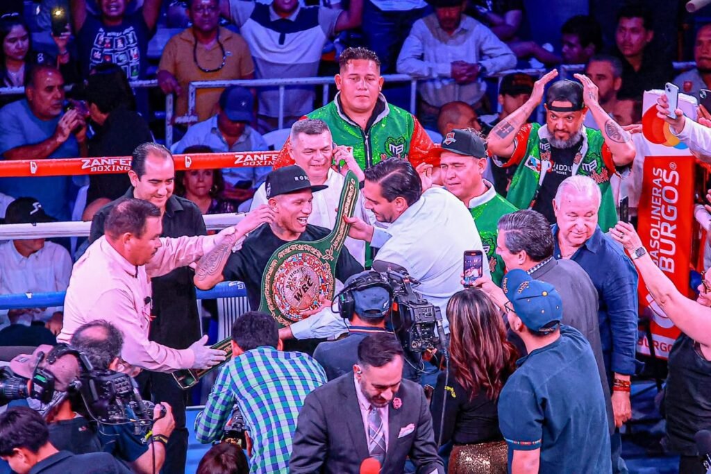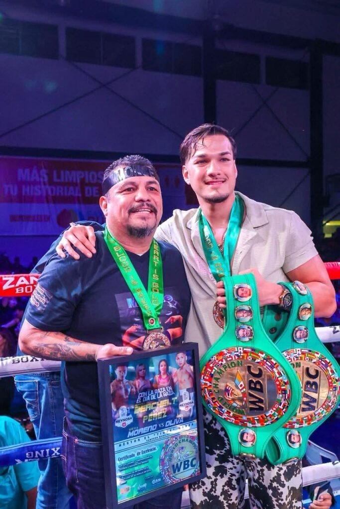 Reynosa, Tamaulipas. El “Cinturón Reynosa” del Consejo Mundial de Boxeo, WBC, fue disputado la noche del sábado 11 de octubre en la pelea estelar “Con La Raza en el Día de La Raza”, con la presencia del Alcalde Carlos Peña Ortiz y del Presidente del World Boxing Council, Mauricio Sulaimán Saldivar, quienes extendieron su felicitación a Miguel Berchelt el triunfador.